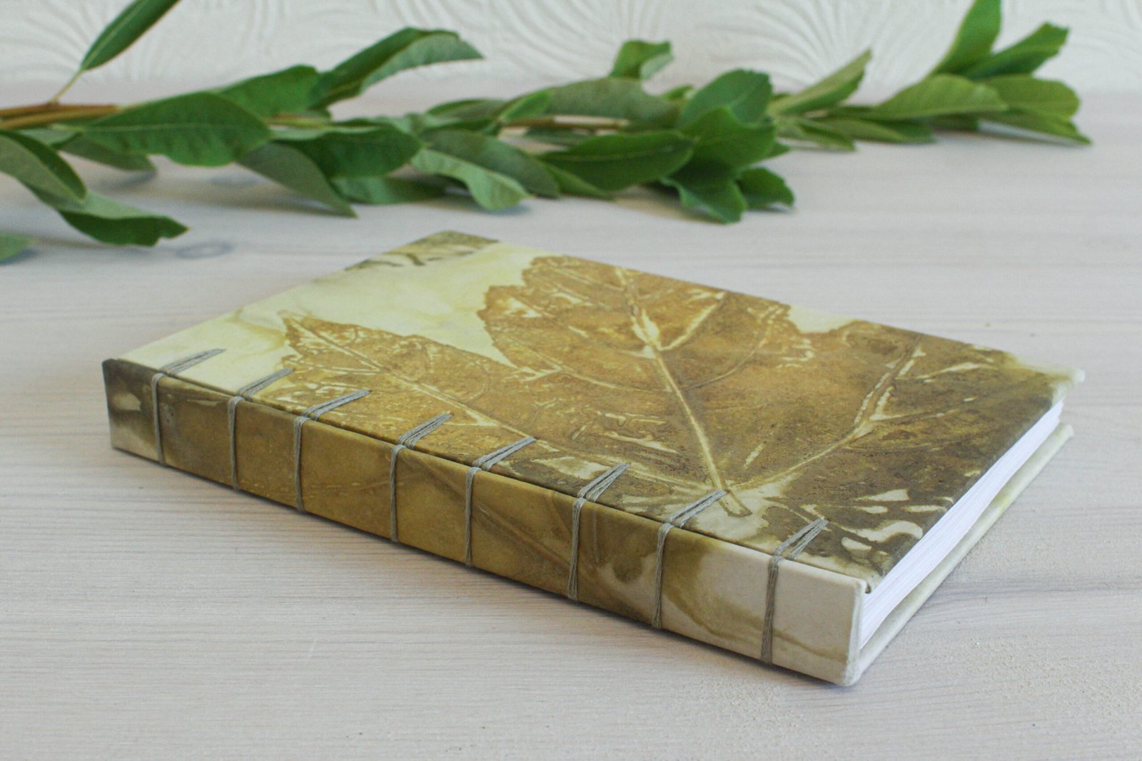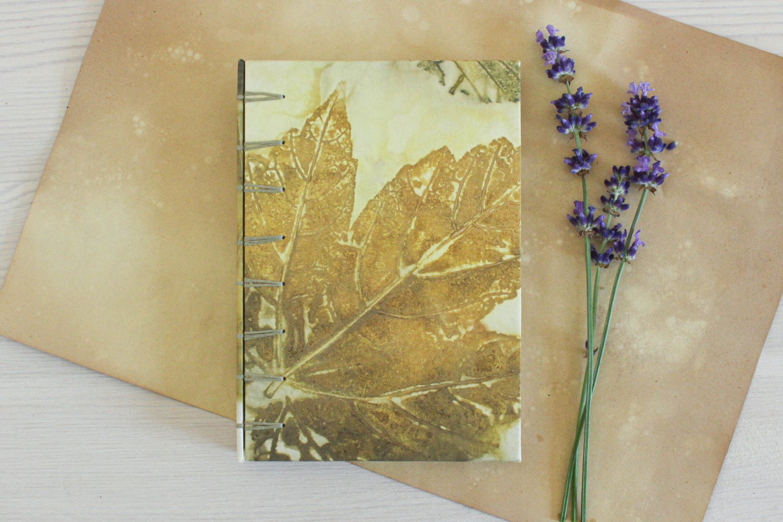 – Hardback covered with my hand dyed ecoprint paper