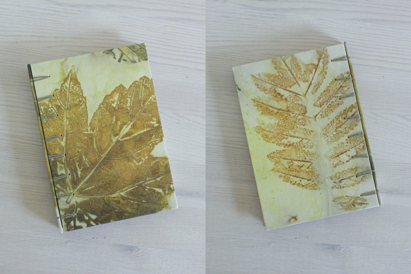 Ecoprinting, ecodyeing, or botanical printing is a natural dyeing process by which the colours and shapes of leaves are transferred onto paper. Leaves are layered between sheets of paper and boiled for 1 hour, which allows to natural colours in the leaves to dye the paper. I use other natural dyes, such as red cabbage, onion skins, black tea, fruit tea, iron etc. to further colour the paper.