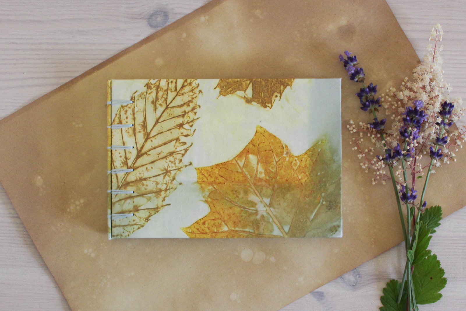 – Hardback covered with my hand dyed ecoprint paper